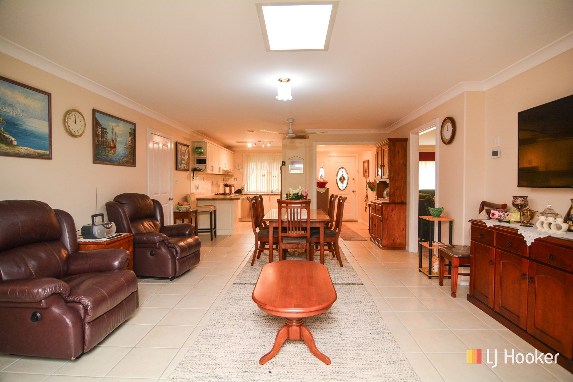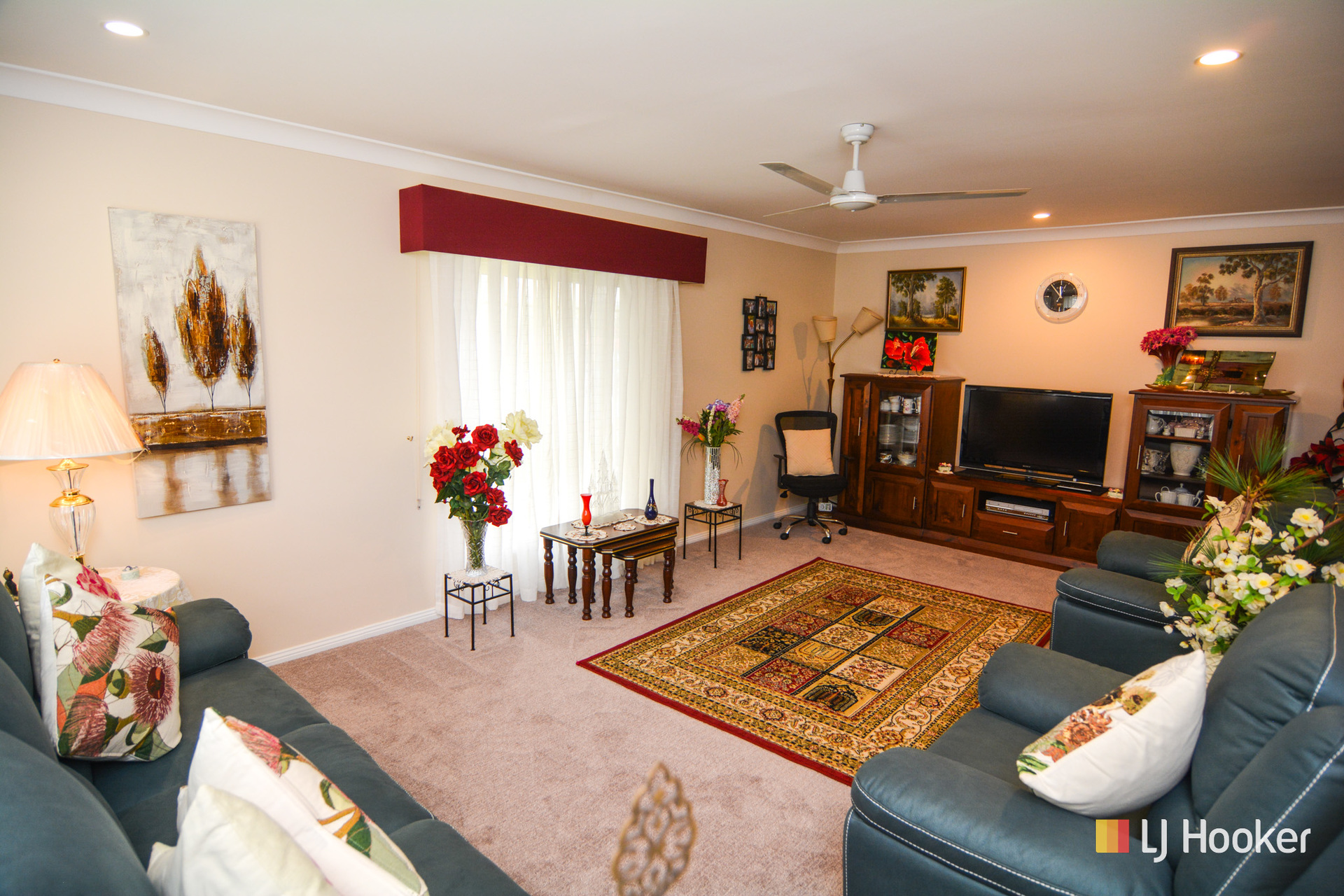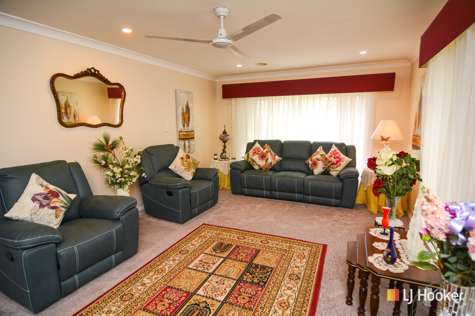 The conventional floor plan offers brand new carpet and brand new paint throughout, 3 bedrooms with built-in wardrobes, 2 living areas, a modern kitchen with breakfast bar and dishwasher, a modern 3-way bathroom, and a large Queensland room off the rear of the home. There are roller shutters to all windows along with a back to grid solar energy system and brand new ducted gas central heating system.